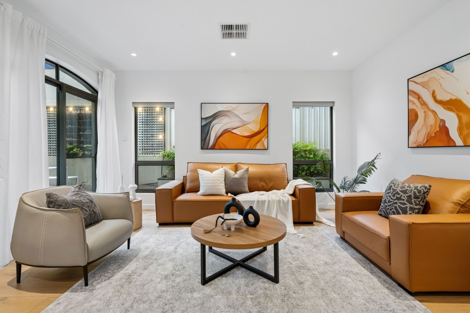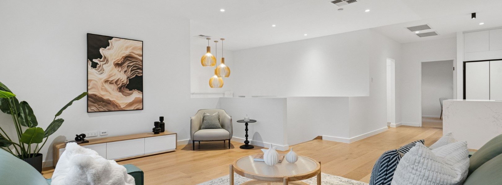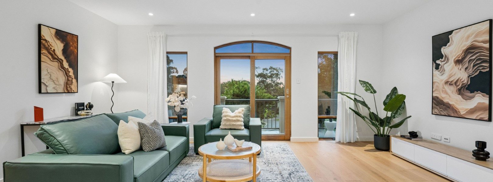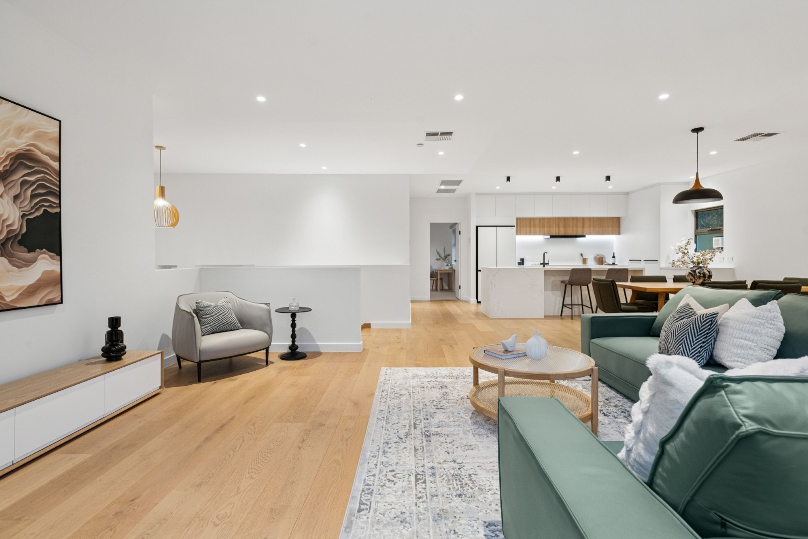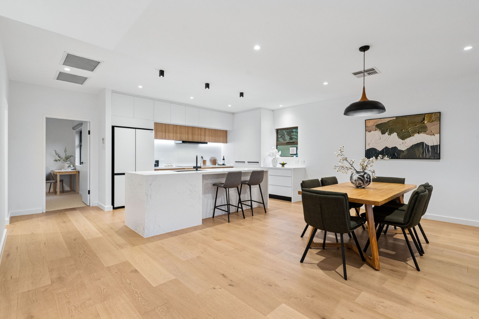 全屋贯穿着充盈的光线、温暖的质感与开阔的空间感。三层分布匠心布局,提供五间卧室、三间浴室与多个起居空间,皆以树梢景致为框景,既保证隐私,又兼顾家庭互动。