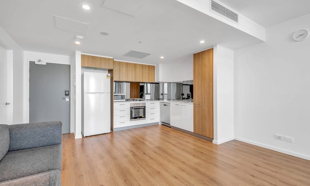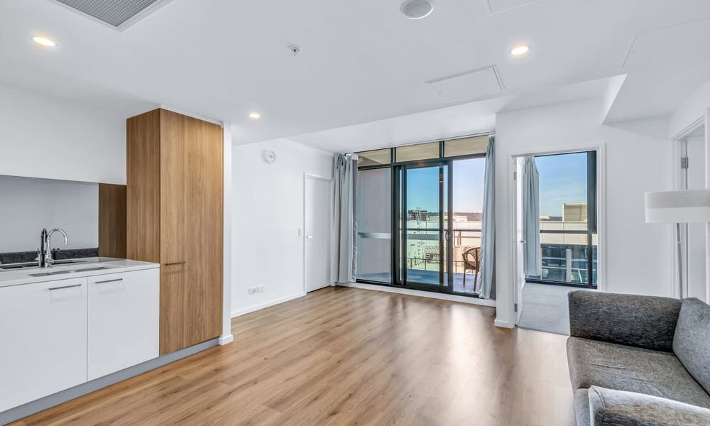 这完美体现了公寓并不沒有牺牲空间。分区布局将客人和家庭置身于时尚的开放式起居和餐饮区。平滑的木地板、闪亮的LED射灯和时尚的现代厨房将这个区域打造成一个娱乐中心。阳台上还有一个无尽的阿德莱德地平线的如画景色。