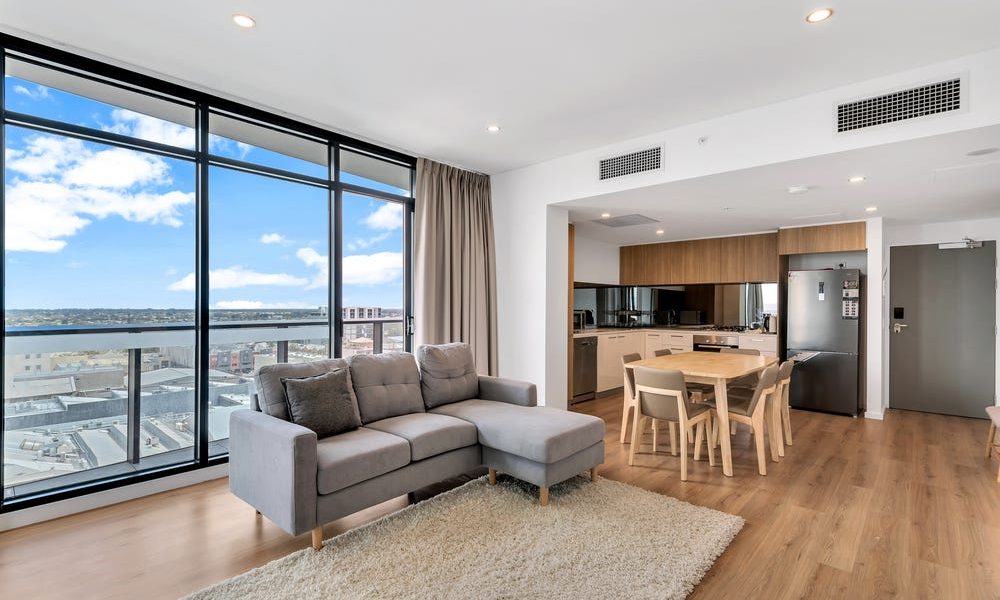 除了配备了内置衣柜、豪华地毯的卧室和带有斯堪的纳维亚风格梳妆台的浴室外,这套公寓还提供健身房、全长游泳池、私人影院和现代商务中心等设施。