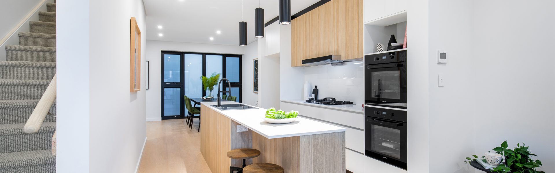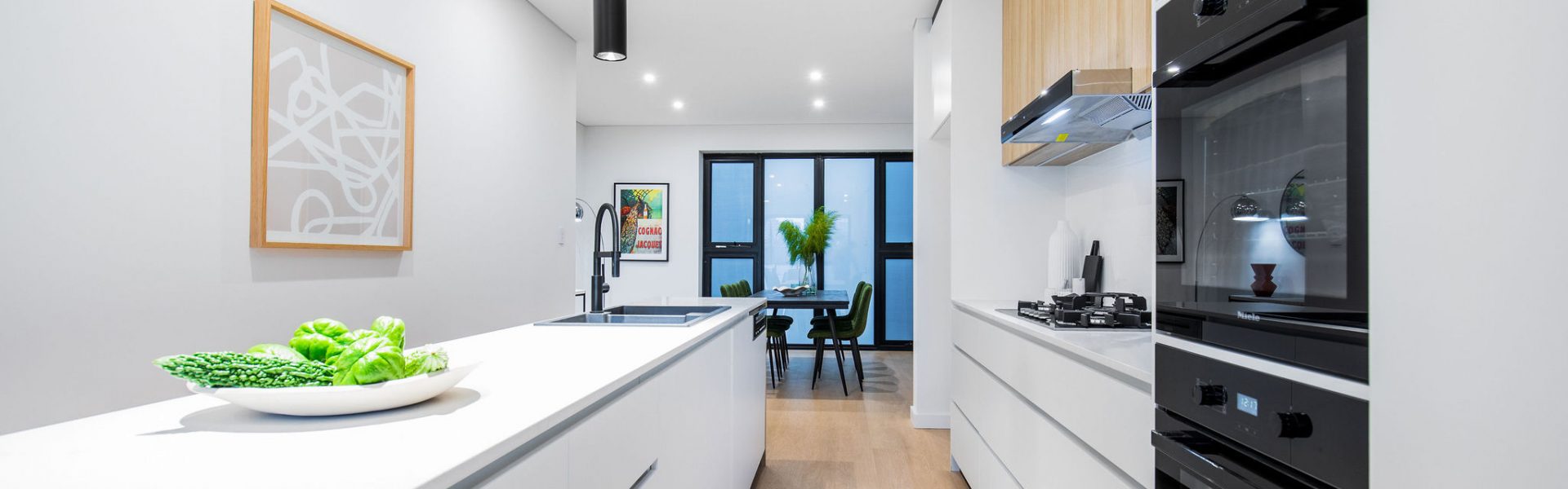 Miele(美诺)厨房电器,双烤箱,石质岛台,装饰吊灯,隐藏垃圾桶,充足厨房储物空间