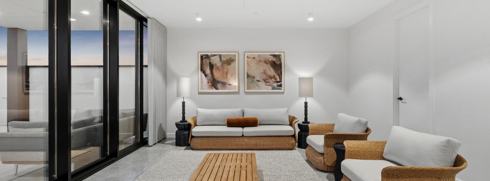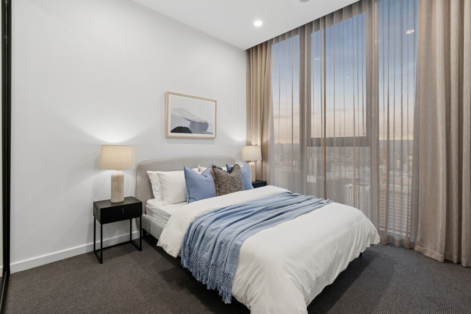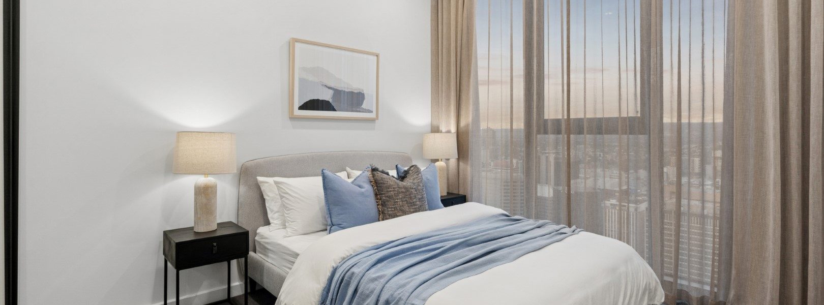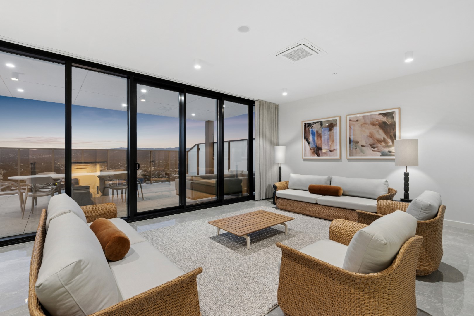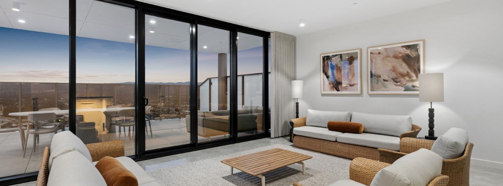 两处宽景阳台延伸城市天际线,将朝阳与落日晚霞尽情展开。