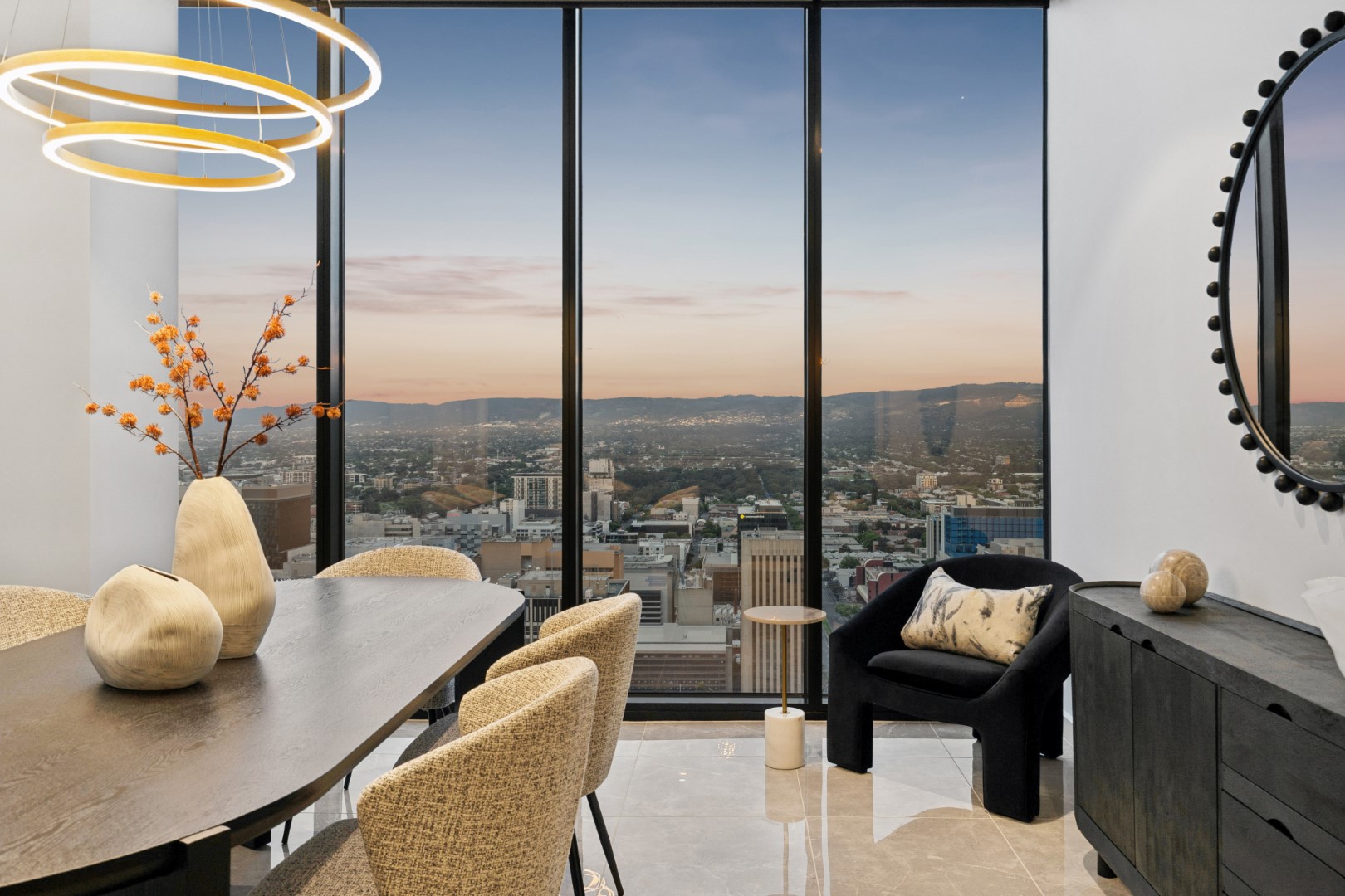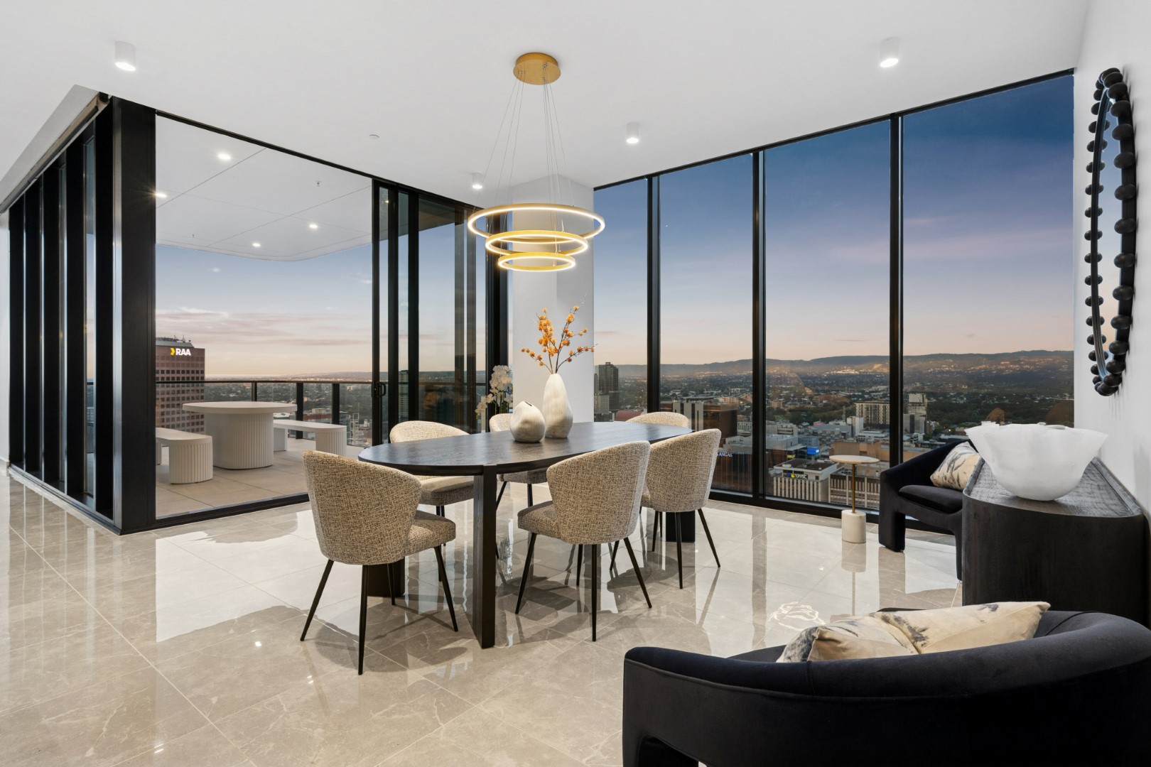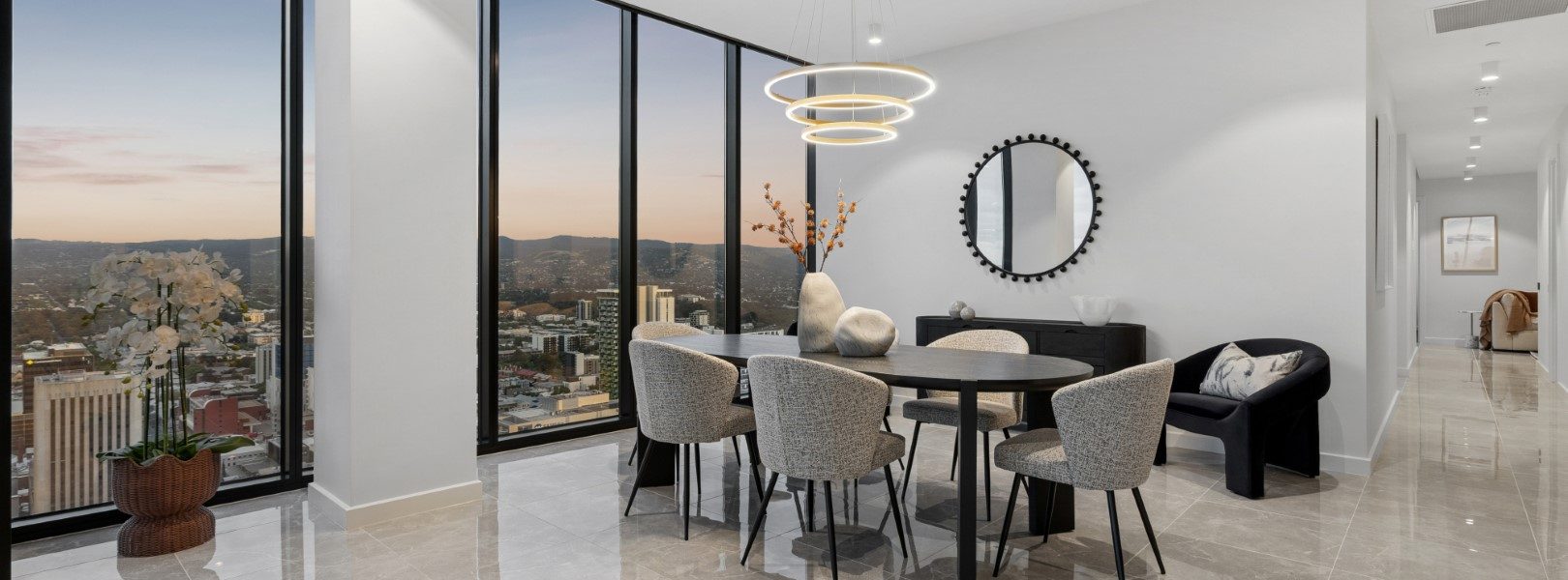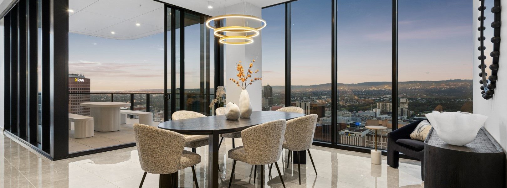 占据顶层两层、横跨413平方米的无界奢居空间,这是阿德莱德极少数能真正称得上“天际宅邸”的存在。