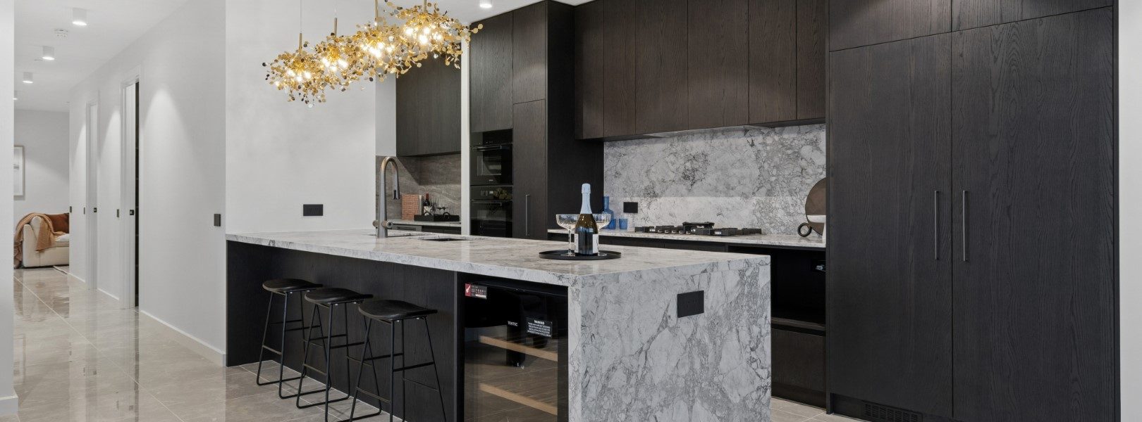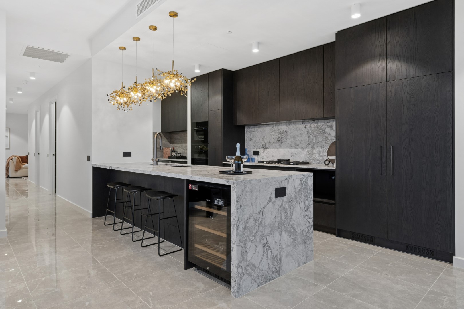 大面积的开放式会客厅与餐厅,搭配全石材奢华厨房、隐藏式家电配置、功能齐全的管家式备餐间,以及专为藏家打造的恒温酒窖,无论宴客还是私享,皆显赫气度。
