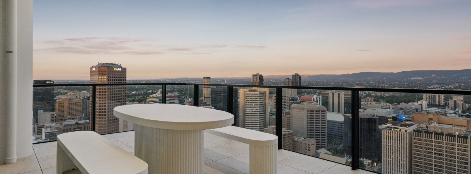 矗立于阿德莱德心脏地带的维多利亚广场之上,顶层空中府邸以 120 米的惊人高度俯瞰整座城市。