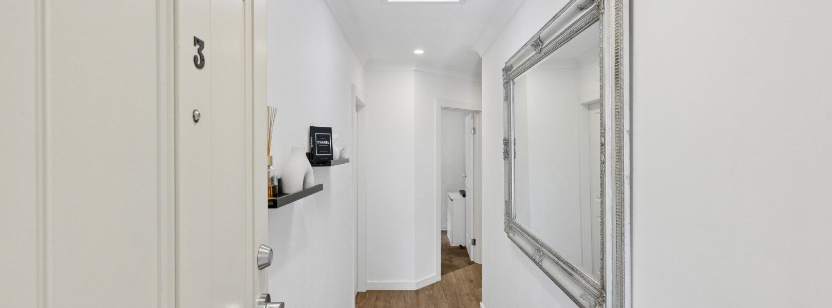 厨房配置令人印象深刻——配备Blanco洗碗机、高端Franke水槽及Puratap净水系统。丰富的储物空间与大型中岛吧台,为日常生活提供了便利与社交的完美结合。两间卧室均设有内置衣柜,主卧更享有通往时尚浴室的私密通道;浴室设有独立洗手台与卫生间,布局合理。