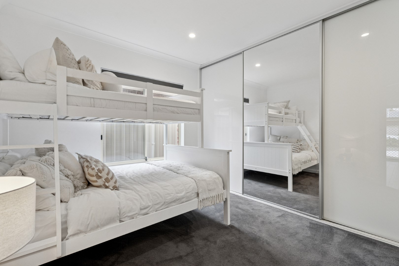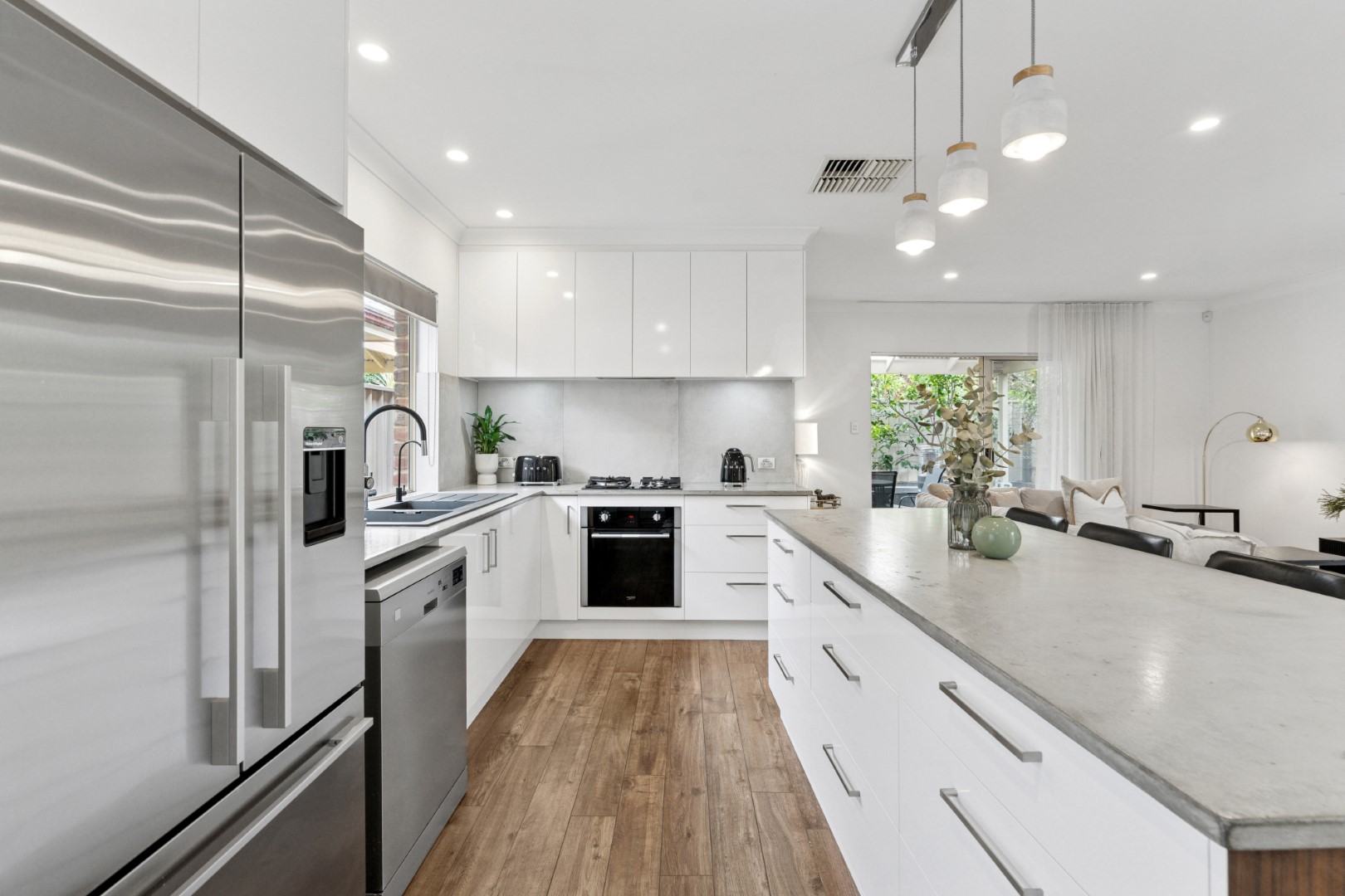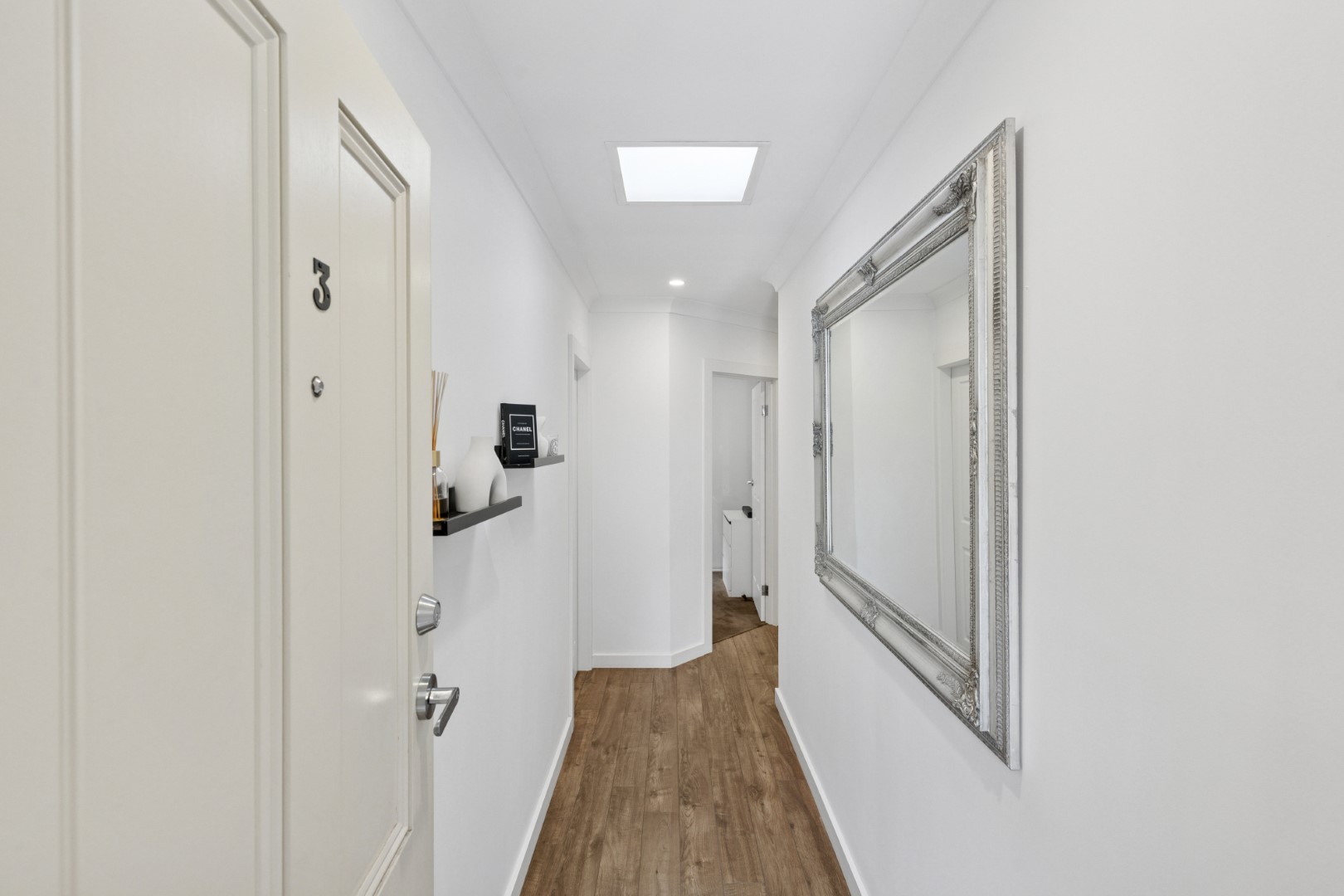 厨房配置令人印象深刻——配备Blanco洗碗机、高端Franke水槽及Puratap净水系统。丰富的储物空间与大型中岛吧台,为日常生活提供了便利与社交的完美结合。两间卧室均设有内置衣柜,主卧更享有通往时尚浴室的私密通道;浴室设有独立洗手台与卫生间,布局合理。