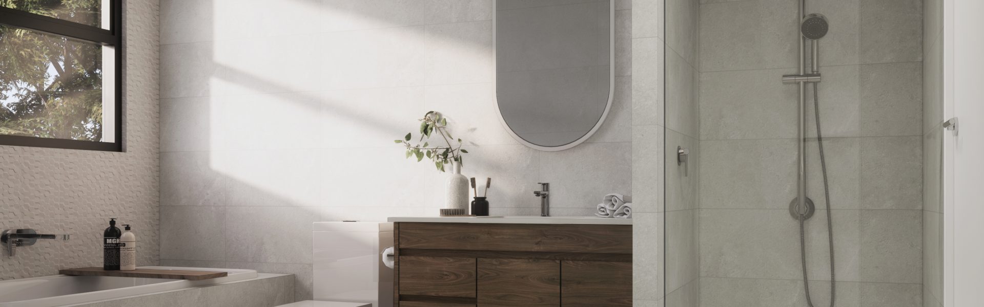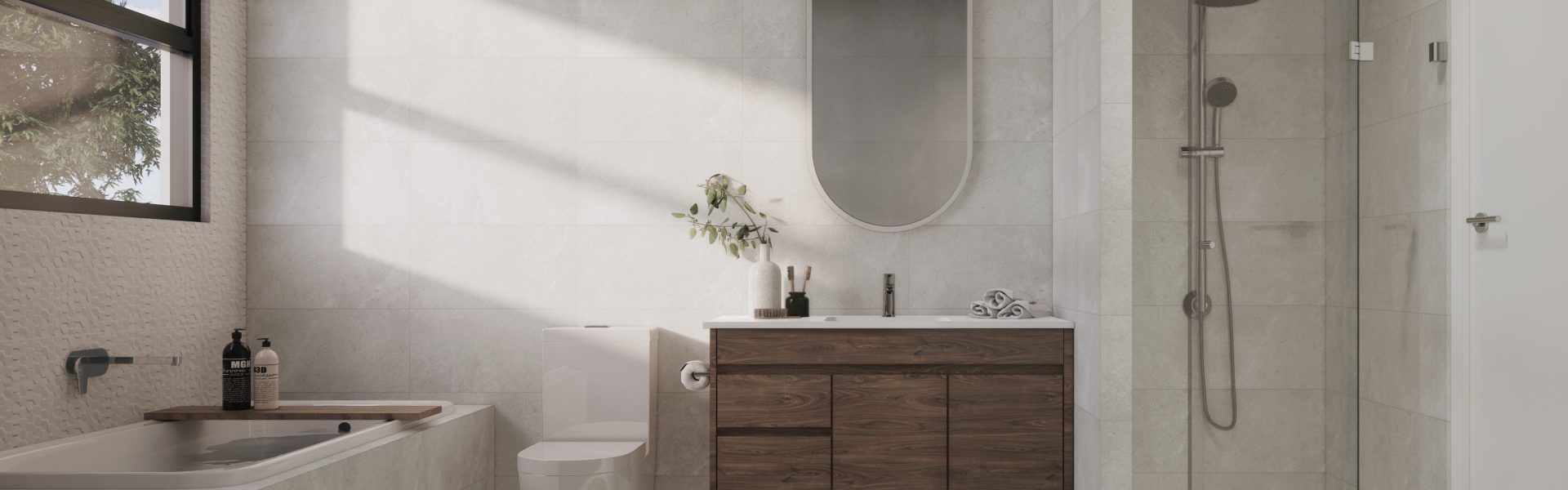 I 浴室瓷砖到顶,无边框淋浴玻璃增添质感